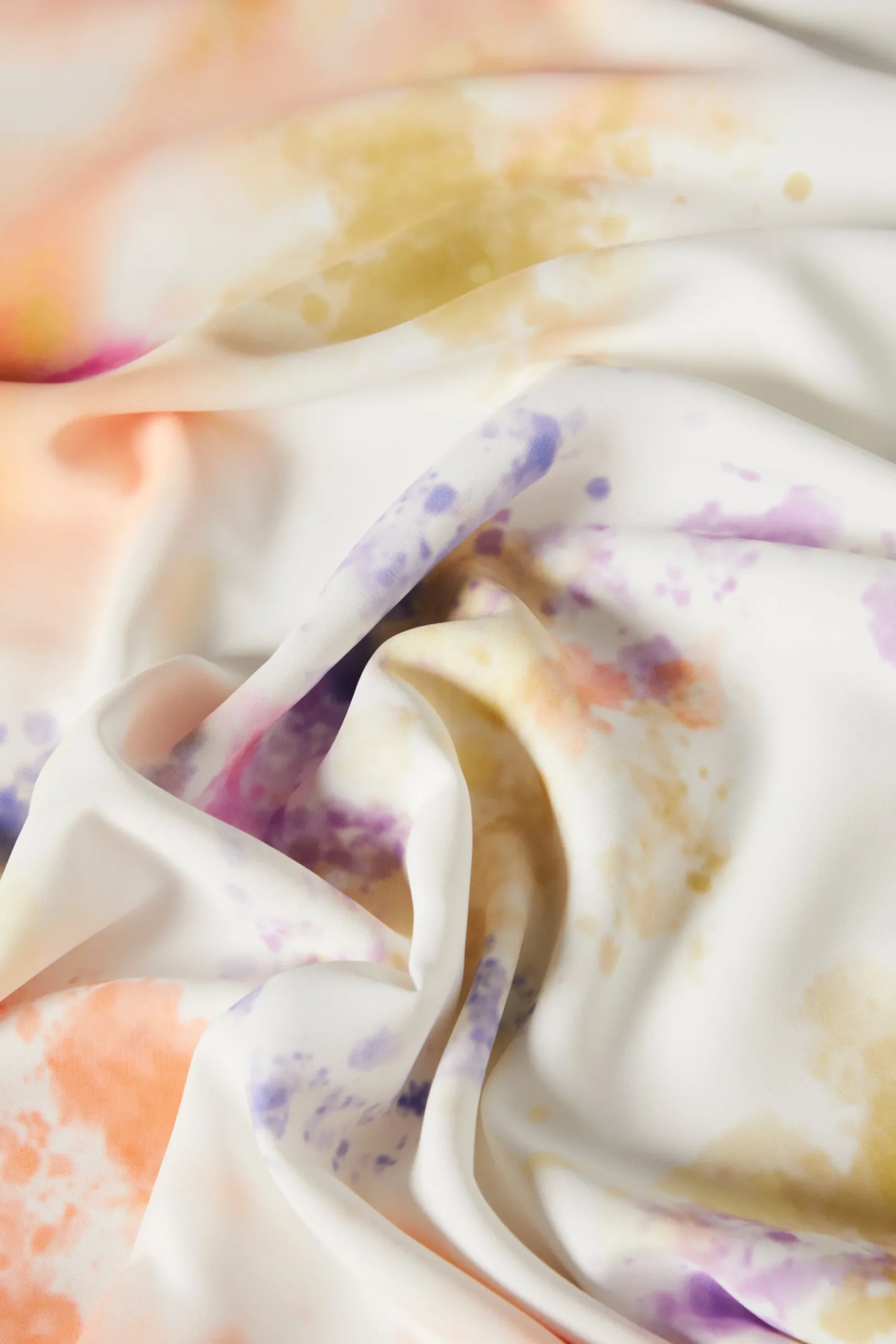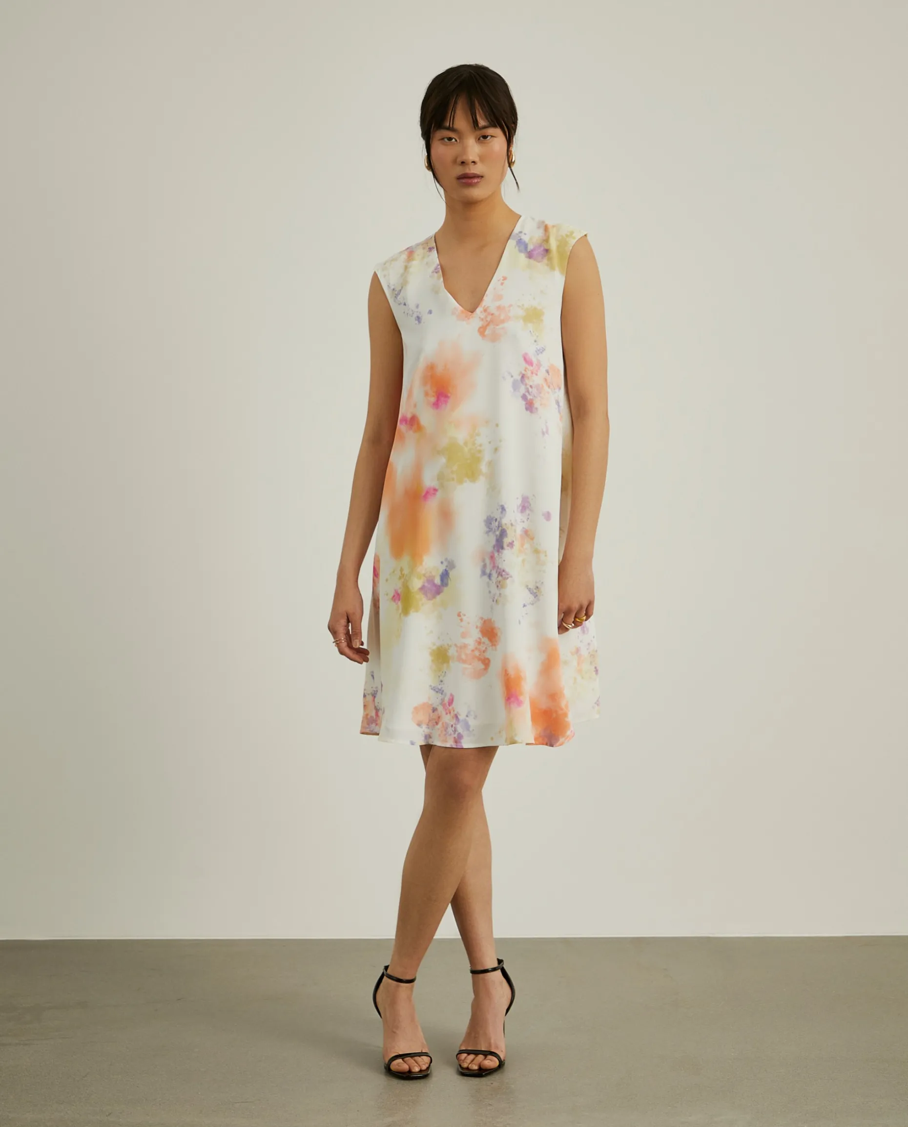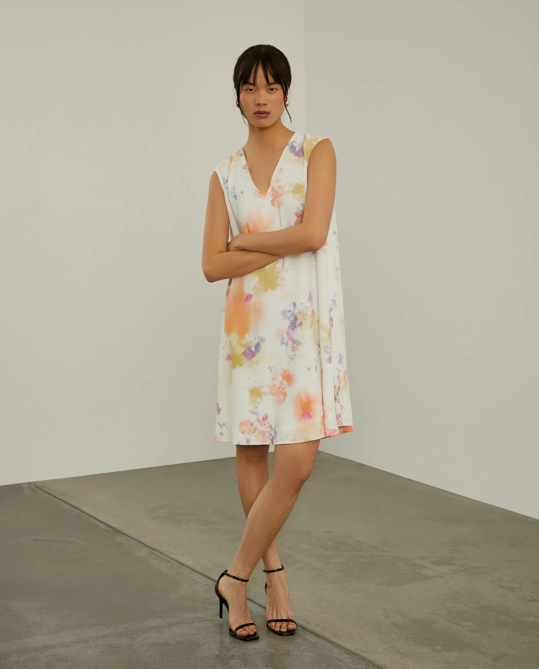 Opte por um look verdadeiramente primaveril com este vestido fluido com padrão tie dye por toda a peça. De manga curta e com decote em V.