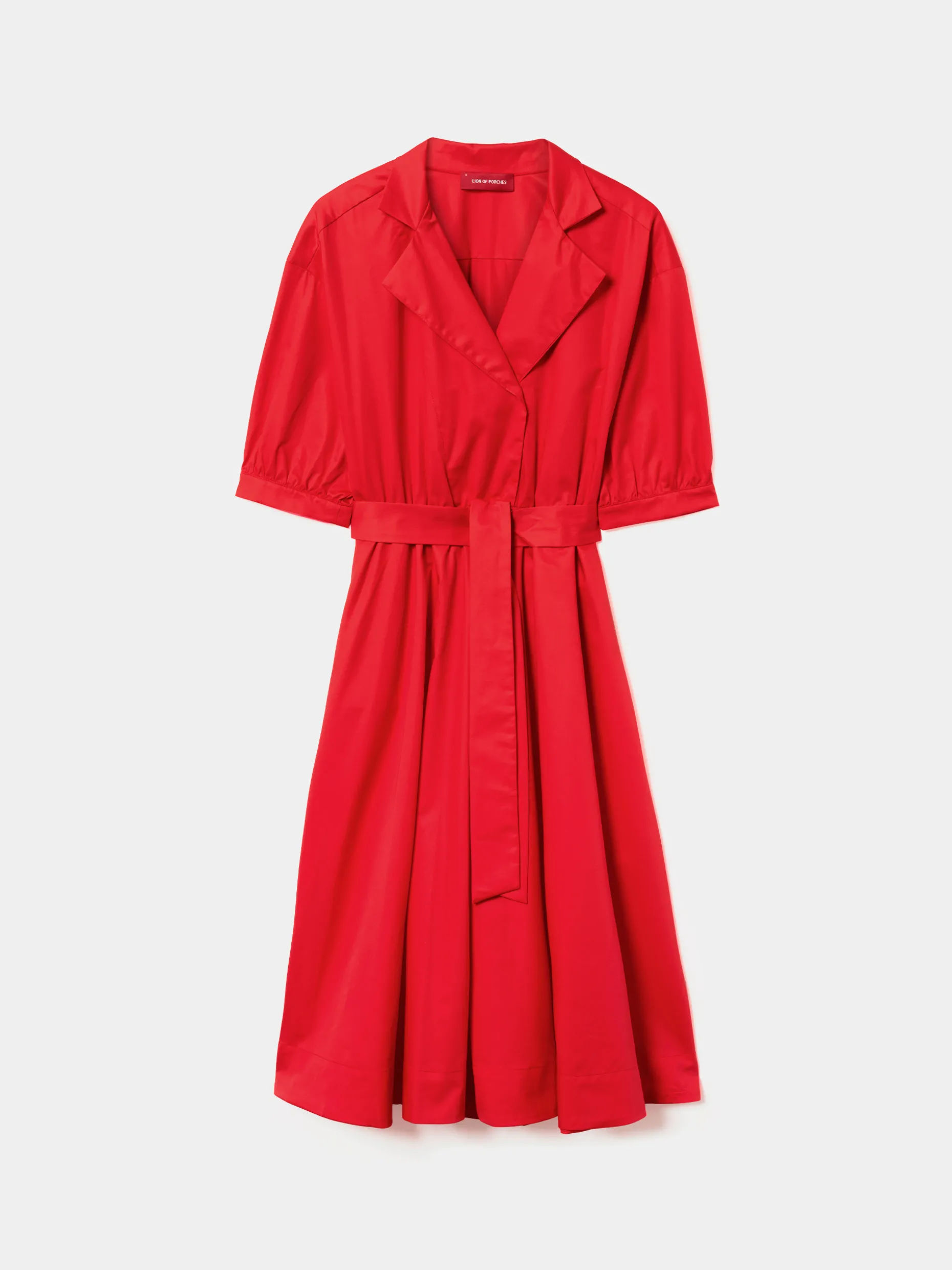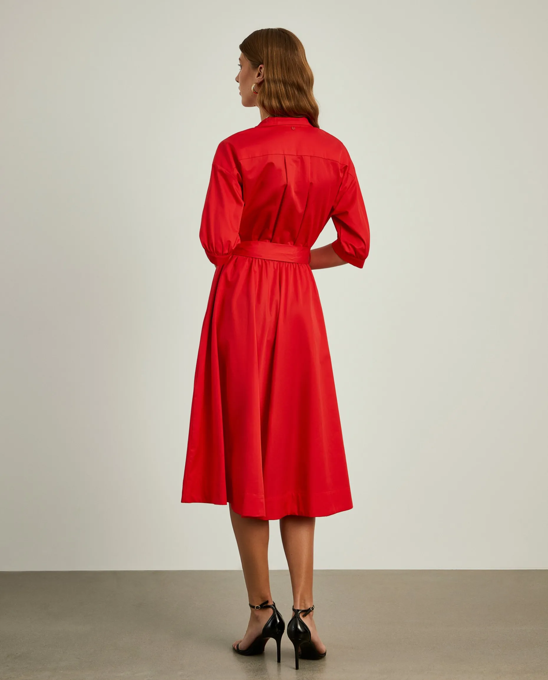 Vestido midi, com mangas abalonadas. De trespasse na frente, tem um cinto, no mesmo tom e tecido, para ajustar a gosto e conferir uma silhueta mais elegante. É confecionado, na totalidade, em algodão para maior conforto e suavidade.