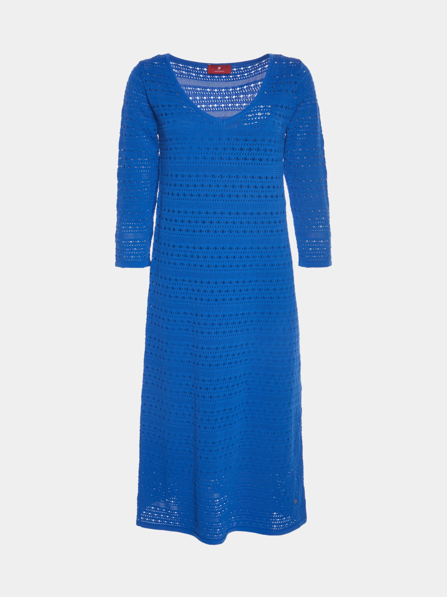 Vestido midi de manga 3/4 em malha e com decote em V.